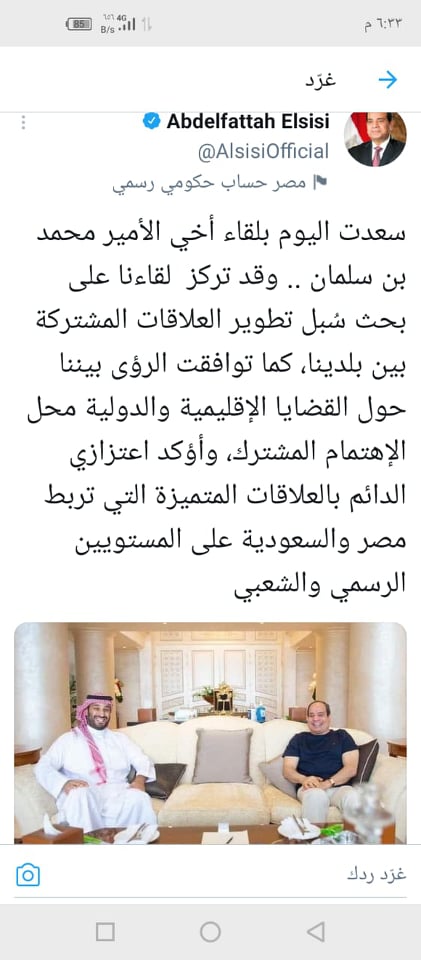الرئيس السيسي: المباحثات مع ولي عهد السعودية تناولت تطوير العلاقات المشتركة والقضايا الإقليمية والدولية ذات الاهتمام المشترك