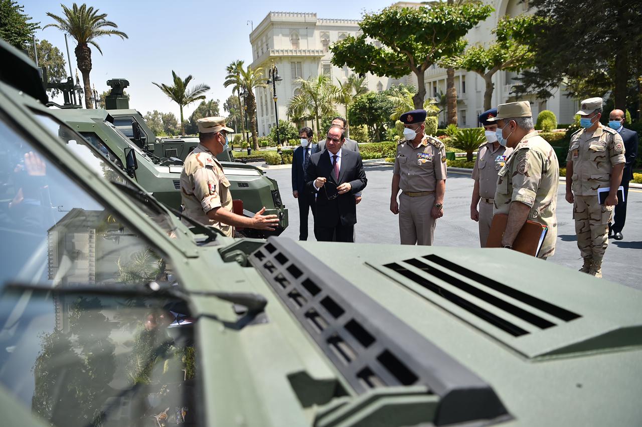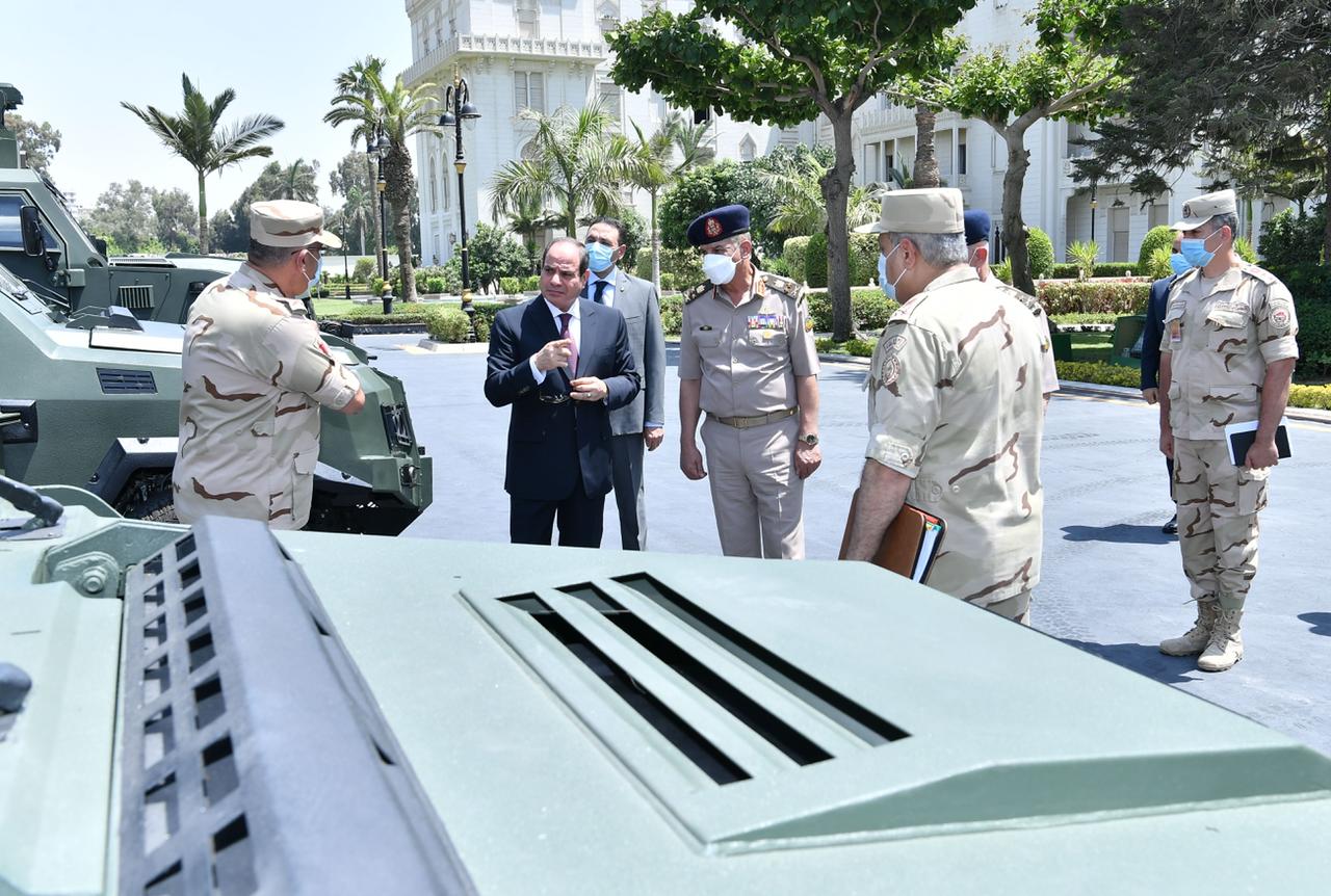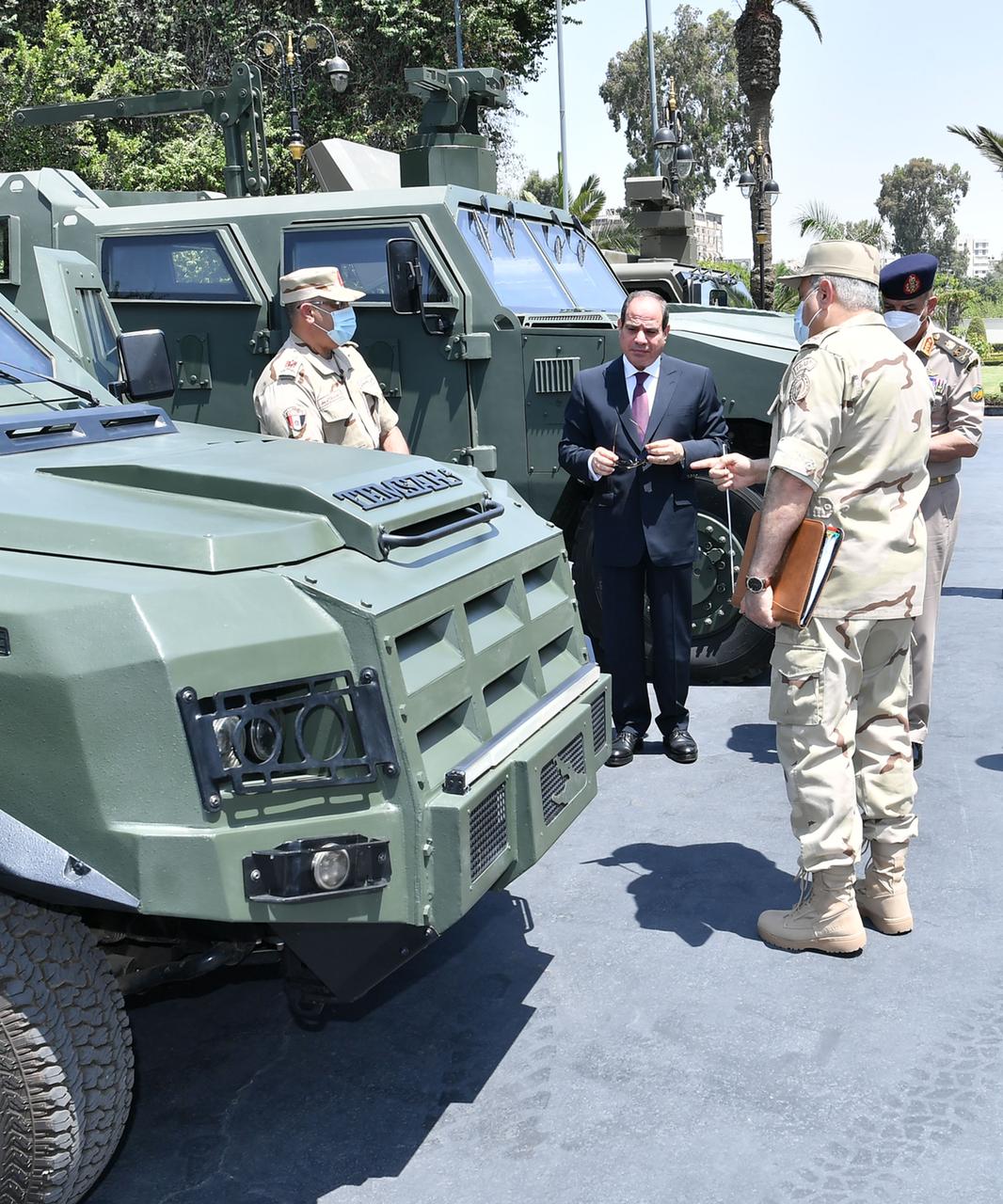 كما أوضح المتحدث الرسمي أن السيد الرئيس تفقد عدداً من المركبات المدرعة مُتعددة المهام التي تم تصنيعها بإمكانات القوات المسلحة، وذلك في حضور القائد العام للقوات المسلحة، ورئيس الأركان، ومدير ادارة المركبات، حيث استمع سيادته إلى شرح تفصيلي لمراحل التصنيع المختلفة بدءاً من مرحلة التصميم وإجراء الاختبارات المعملية، مروراً بمراحل إقرار التصميمات حتى الوصول لمرحلة المنتج النهائي، والذي روعي في إنتاجه تحقيق أعلى معايير الجودة.
