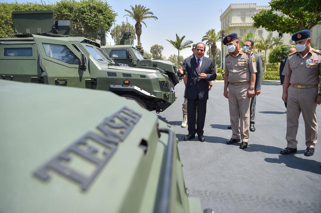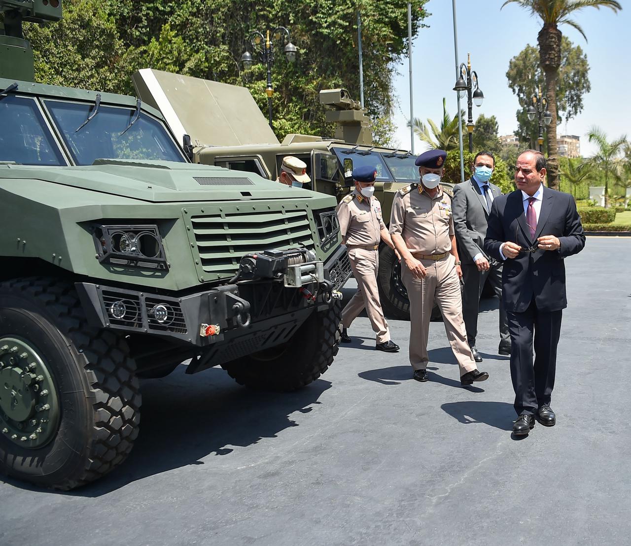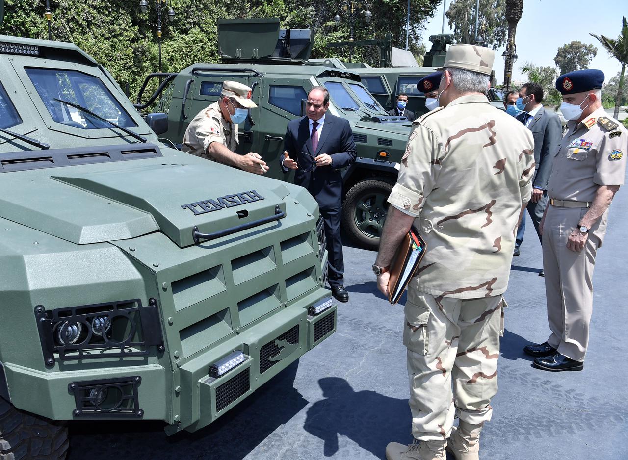 كما أوضح المتحدث الرسمي أن السيد الرئيس تفقد عدداً من المركبات المدرعة مُتعددة المهام التي تم تصنيعها بإمكانات القوات المسلحة، وذلك في حضور القائد العام للقوات المسلحة، ورئيس الأركان، ومدير ادارة المركبات، حيث استمع سيادته إلى شرح تفصيلي لمراحل التصنيع المختلفة بدءاً من مرحلة التصميم وإجراء الاختبارات المعملية، مروراً بمراحل إقرار التصميمات حتى الوصول لمرحلة المنتج النهائي، والذي روعي في إنتاجه تحقيق أعلى معايير الجودة.